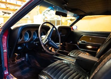The Engine is from another Boss 302. The car was originally lime green and has seats from a Mach 1. The car is not concourse but a chance to have a 302 without spending too much.